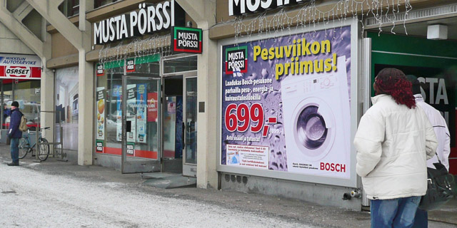 Home utility stores.Clearly visible from the street, this point of sales advertising informs customers what's on sale even before they are in the store.